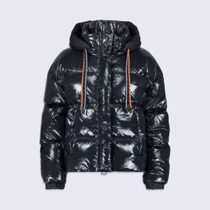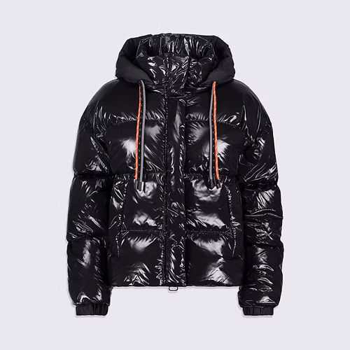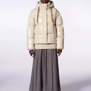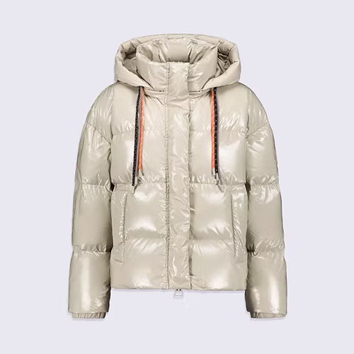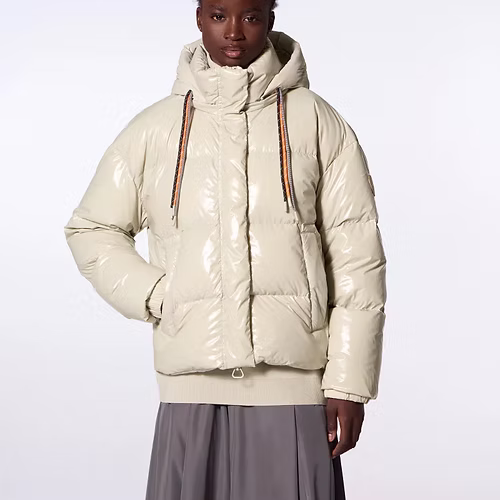 LILI BRIGHT est une doudoune courte confectionnée en nylon glossy. La capuche est amovible et ajustable grâce un triple cordon. Les manches tombantes sont élastiquées au poignet. L’ouverture zippée sur le milieu devant est cachée par une patte pressionnée. Le zip en plastique injecté est rehaussé d’une tirette contrastée. Deux poches sont insérées sur le devant. Le patch en silicone ton sur ton iconique de la marque est apposé sur l’épaule.